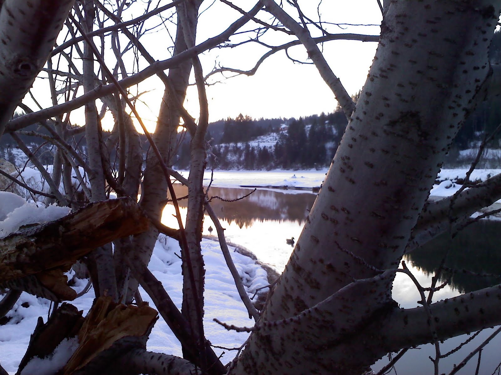 an appetizer for what I would witness for the next hour. Throughout the next hour bunches of mallards and pintails, numbering from 50-200, continuously coming in, flying around me, landing and jumping, jumping and landing, just not around me. They would fly into those small ponds on the other side, and just over the trees towards the Columbia. In all the years I've hunted, I had never seen this many ducks. I sat there flabbergasted unable to pull my trigger or even get my gun off my lap. I could only imagine the look on my face. When I did take a shot it was undirected. I could have just kept pulling my trigger like Warren taught me and ducks would have rained from the sky. But I could not even do that. When it was over I was exhausted. Time to wade my way across and try to find this mass of ducks. I bring may bag of shells and leave everything else and head to the other side. Being stealth was almost impossible, the combination of my frozen waders and frozen grasses around the small ponds. But I think even if I do scare them up there are so many that some would have to fly my way. Nothing! Where the hell did they all go? I am stymied. Hundreds of ducks gone. I make it back and settle in for the rest of the morning. During the next hour and half a few stragglers, I'm cold, time to pack it up. It wasn't the usual pack up when you see a greenie fly over or into your spread, no I look down to the Old Spot and jumping and landing are mucho patos.
